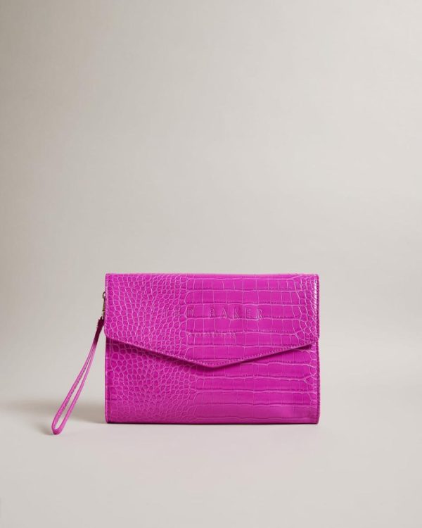 Clutch Bags | Women Ted Baker Crocey Croc Detail Debossed Envelope Pouch Bright Pink