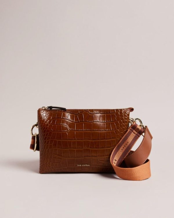 Cross Body Bags | Women Ted Baker Valtina Faux Leather Snake Effect Camera Bag Coral