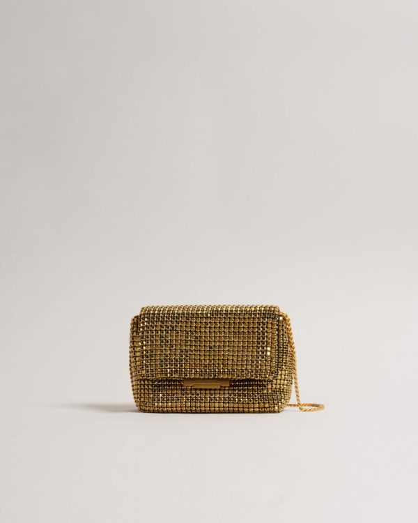 Cross Body Bags | Women Ted Baker Gliters Crystal Mini Cross Body Bag Gold