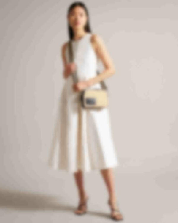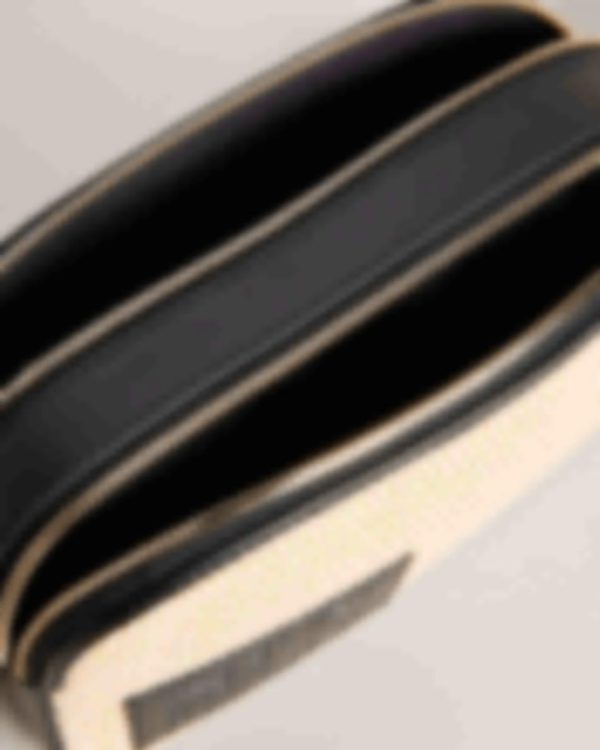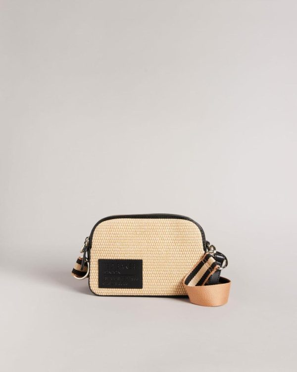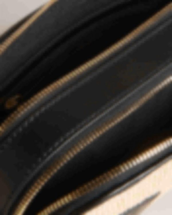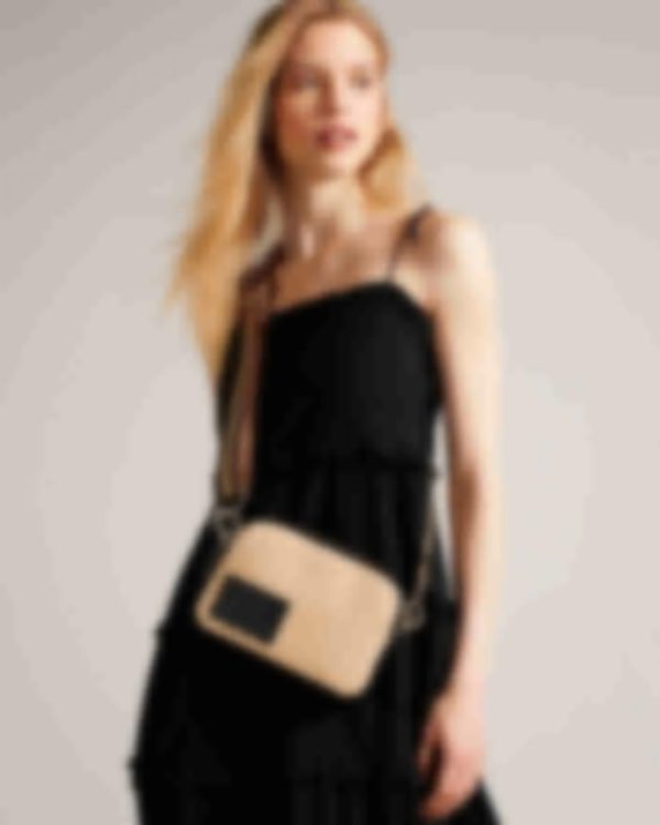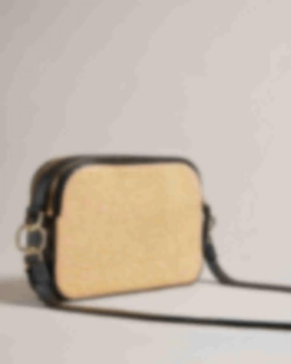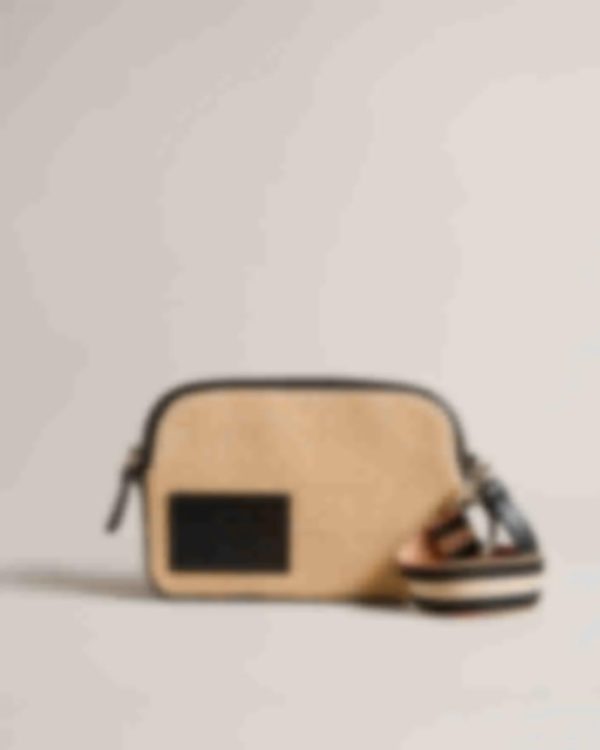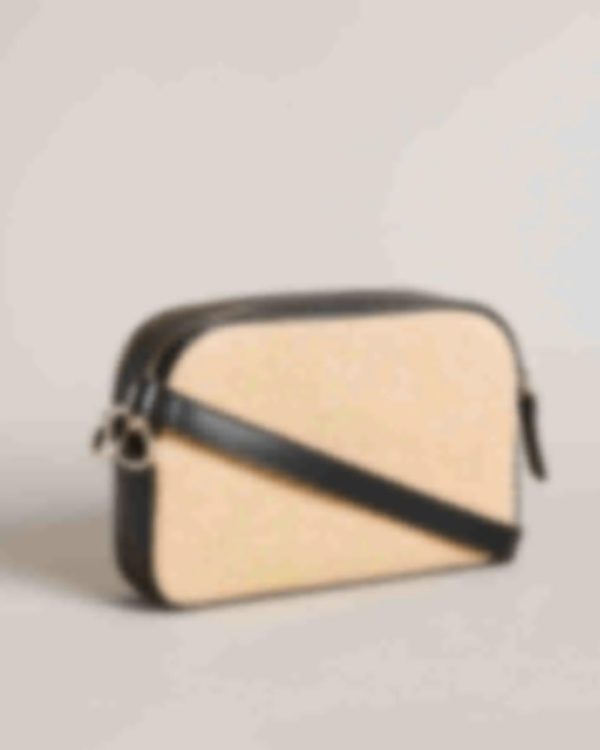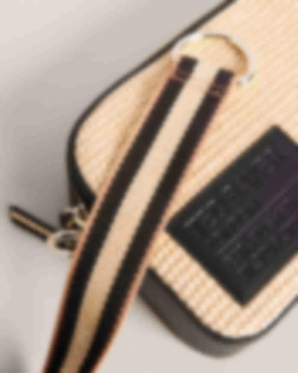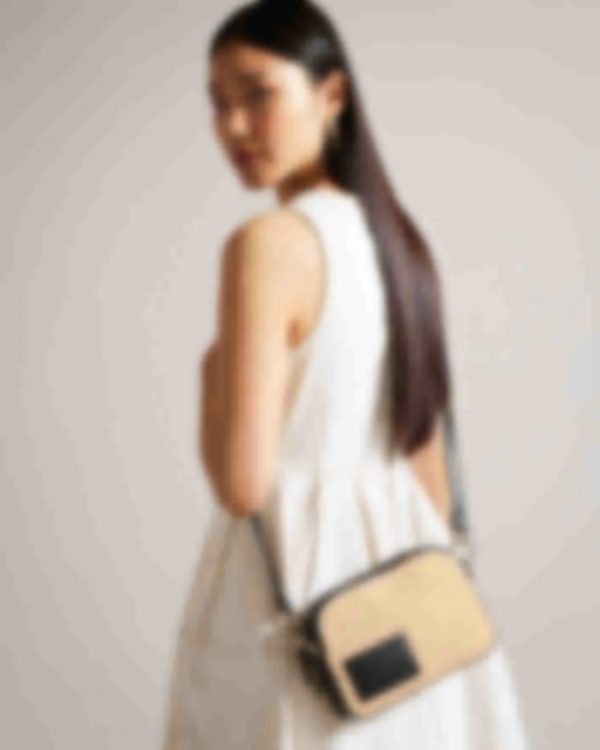 Featuring multiple compartments, a trendy raffia weave, and sleek Ted Baker branded accents, STELLO is a striking cross-body camera bag with multiple compartments and a zip closure for keeping your essentials secure
