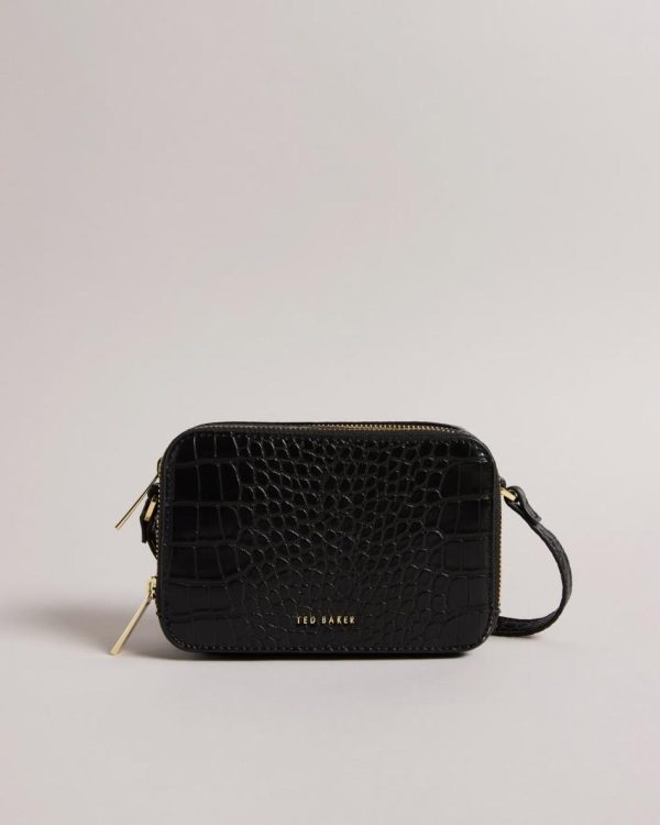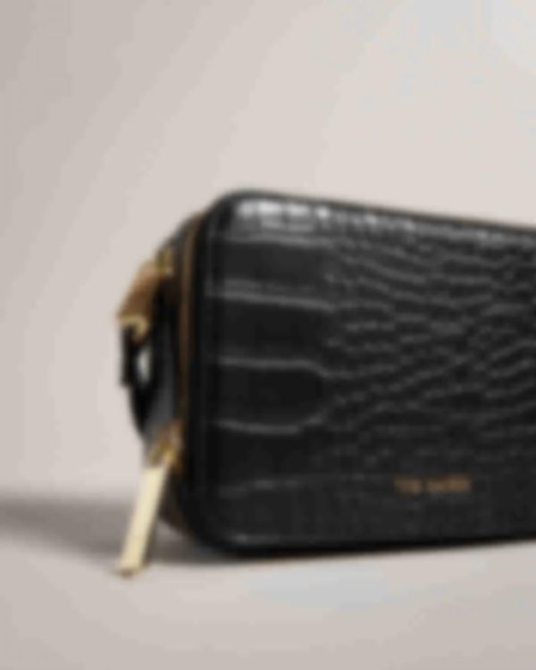 Cross Body Bags | Women Ted Baker Stina Croc Effect Mini Camera Bag Black