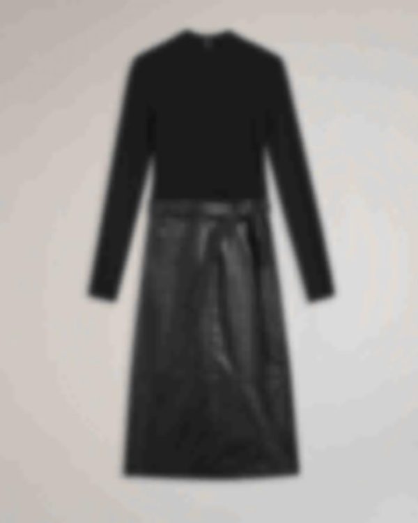 Add some serious texture to your look with the ALLTAA illusion midi dress. Combining a ribbed knit sweater bodice with a faux-leather midi skirt, striking the perfect balance between casual and refined. Complete the look with chunky boots for fashionable weekend strolls through the park and snuggling up in the corner of your favourite coffee shop
