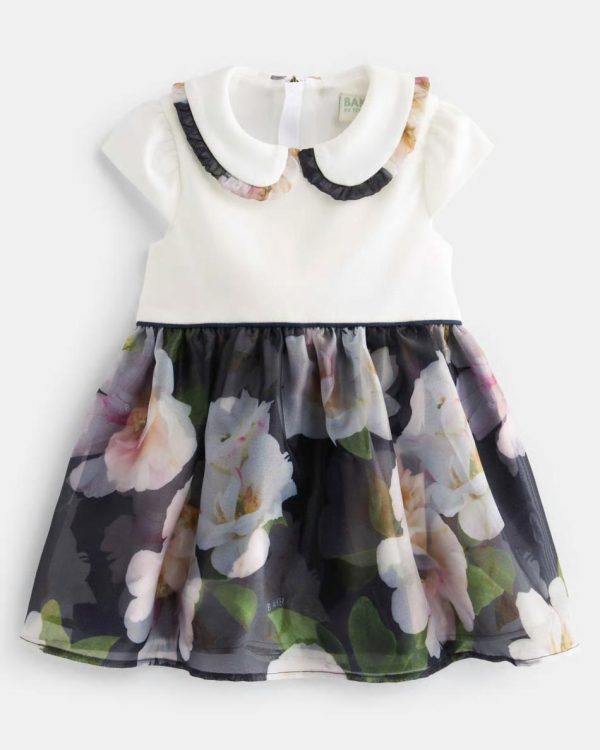 HELGAHH is the cutest little number. It has a full skirt adorned with adorable flowers, and the top is complete with a timeless white bodice with a Peter Pan collar that’s finished with the same flowery fabric
