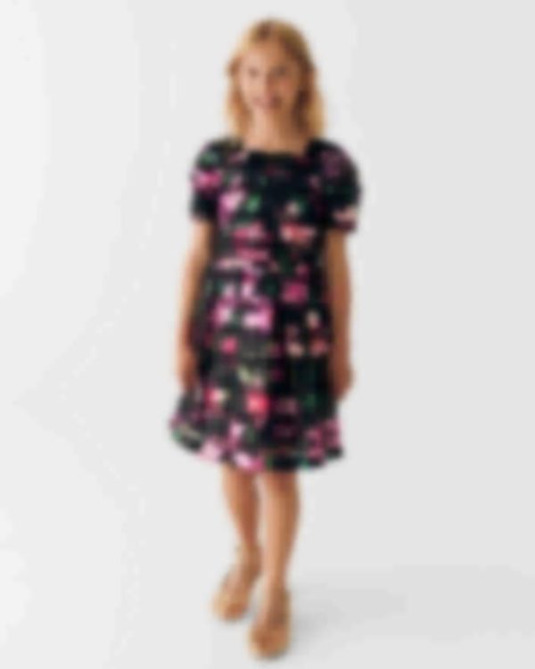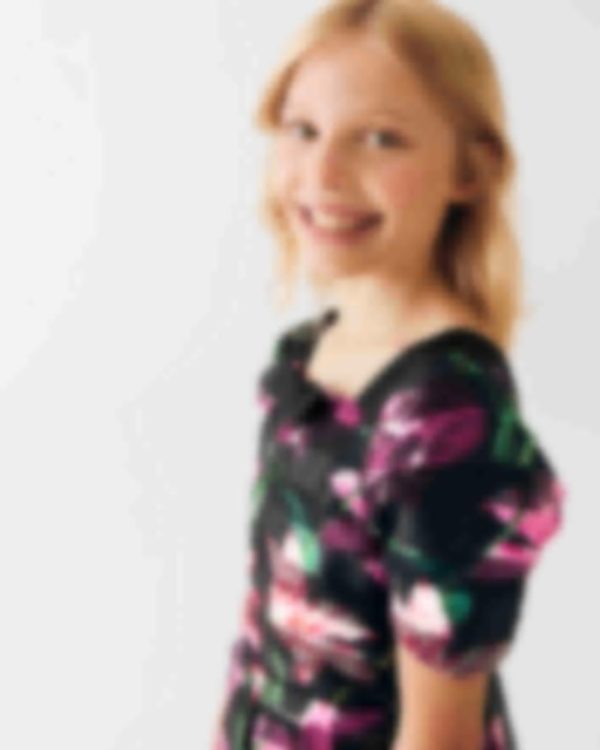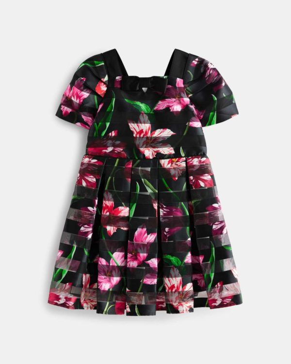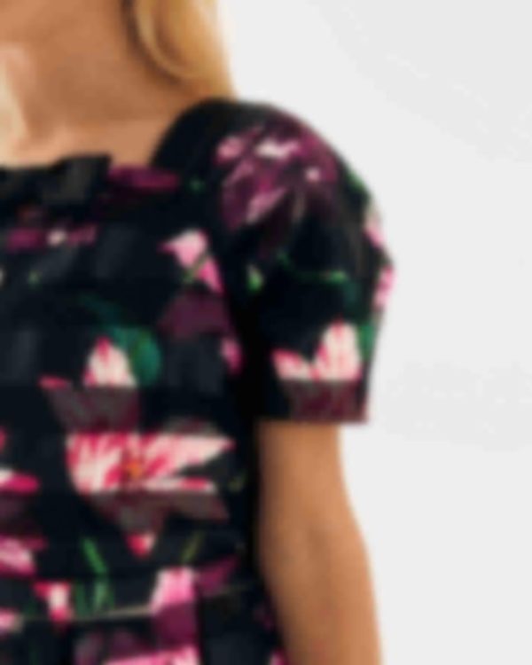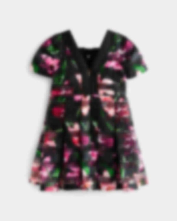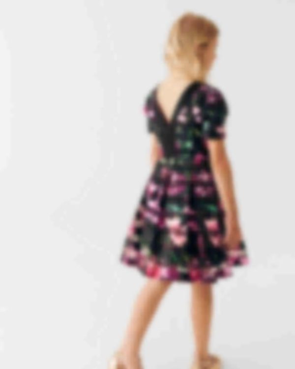 Party season, meet MIIRRY. Adorned with a delightful tulip print and satin stripes, this dress is both playful and elegant. All it needs is a pair of party shoes