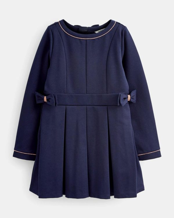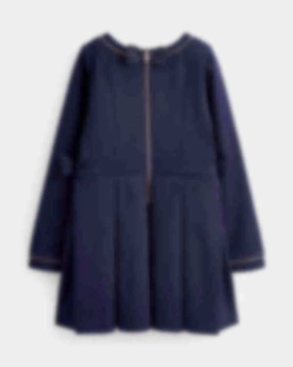 Let your little one shine in NANCIYY. The pleated texture adds a touch of elegance, while the zip fastening ensures easy dressing. The bow embellished waist adds a charming detail, complemented by metallic accents that catch the light. With a comfortable crew neck, this dress combines style and comfort effortlessly