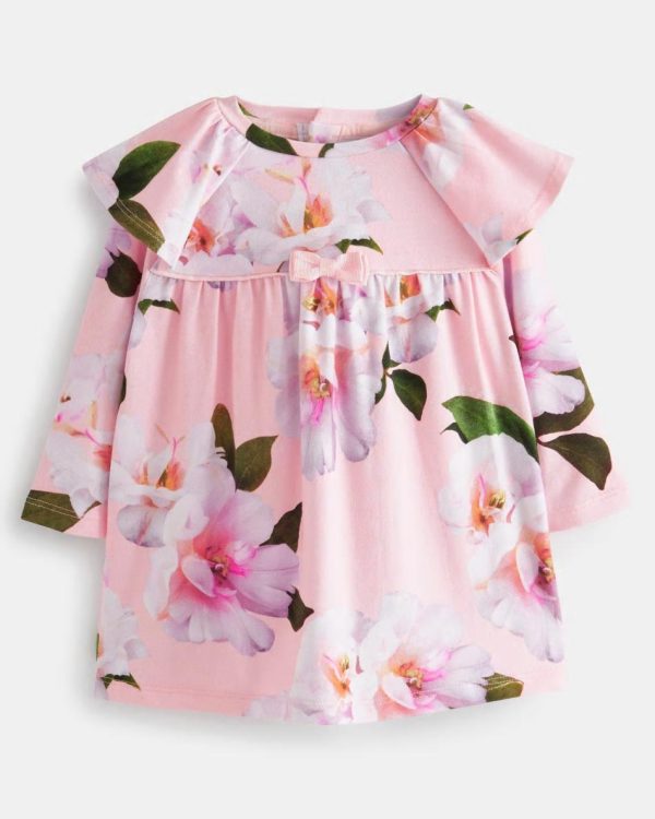 Crafted from soft, stretchy jersey in a lovely floral print, the ROSARA dress features delicate frill detailing on the shoulders. It has a loose, comfortable fit and branded buttons at the back for easy dressing
