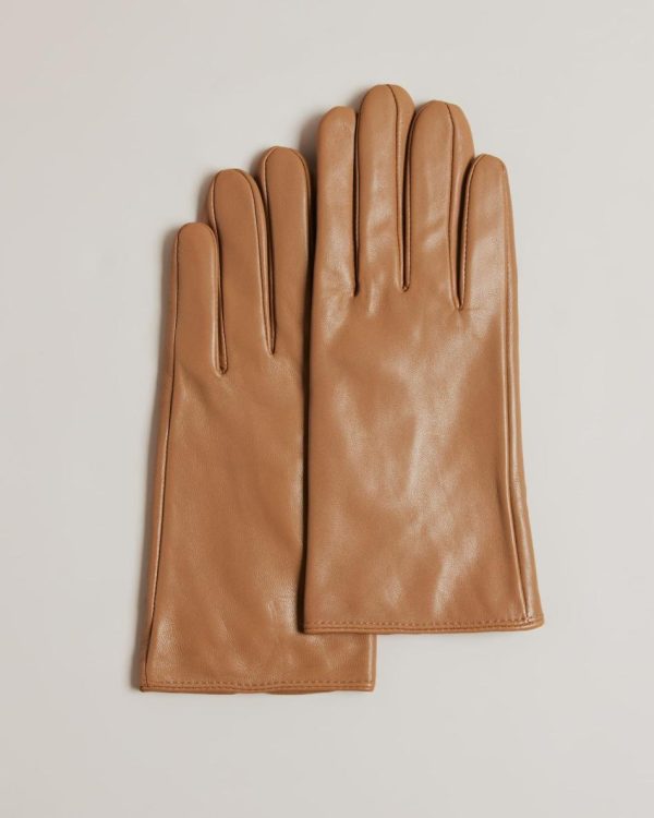 Gloves | Women Ted Baker Arleos Leather T Stud Gloves Brown