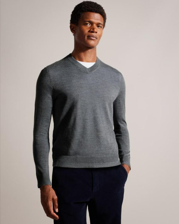 Jumpers & Knitwear | Men Ted Baker Lambeh V-Neck Merino Wool Jumper Charcoal