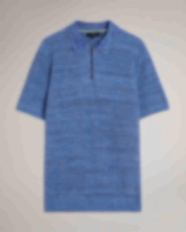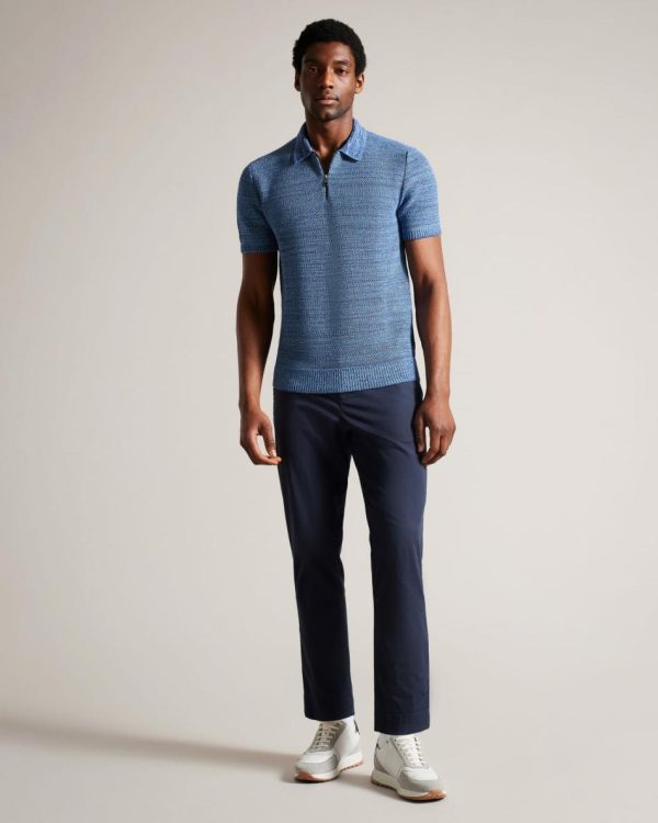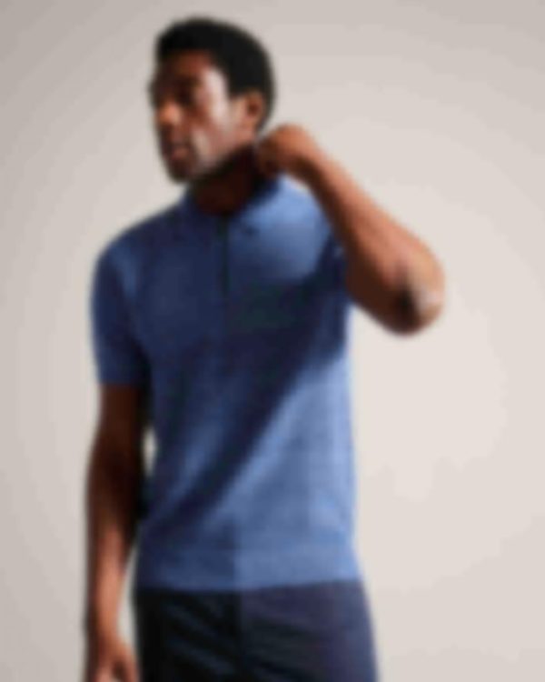 Polo Shirts | Men Ted Baker Blossam Short Sleeve Zip Polo Shirt Blue