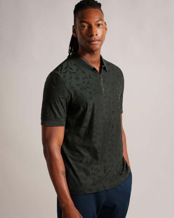 Polo Shirts | Men Ted Baker Polenn Tulip Textured Zip Polo Shirt Dark Green