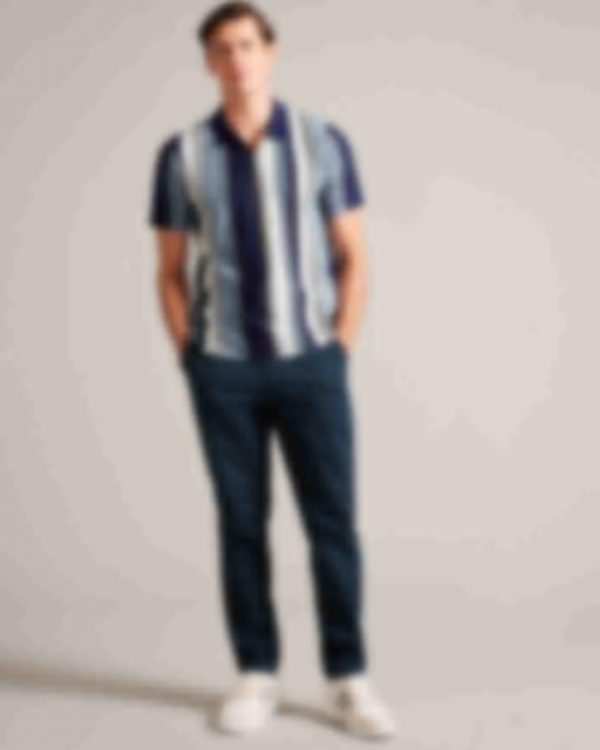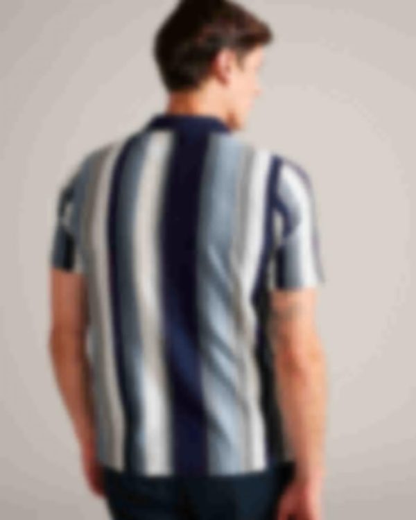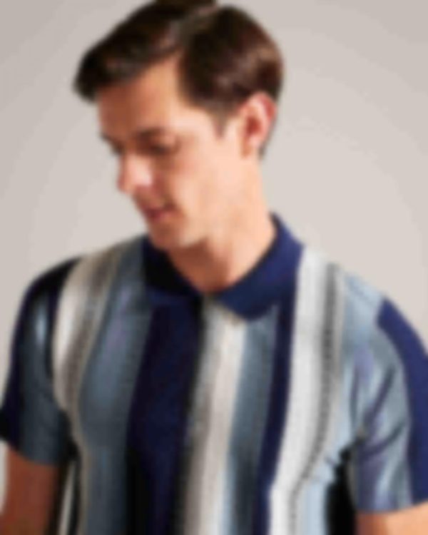 Polo Shirts | Men Ted Baker Walraf Textured Stripe Zip Polo Shirt Navy