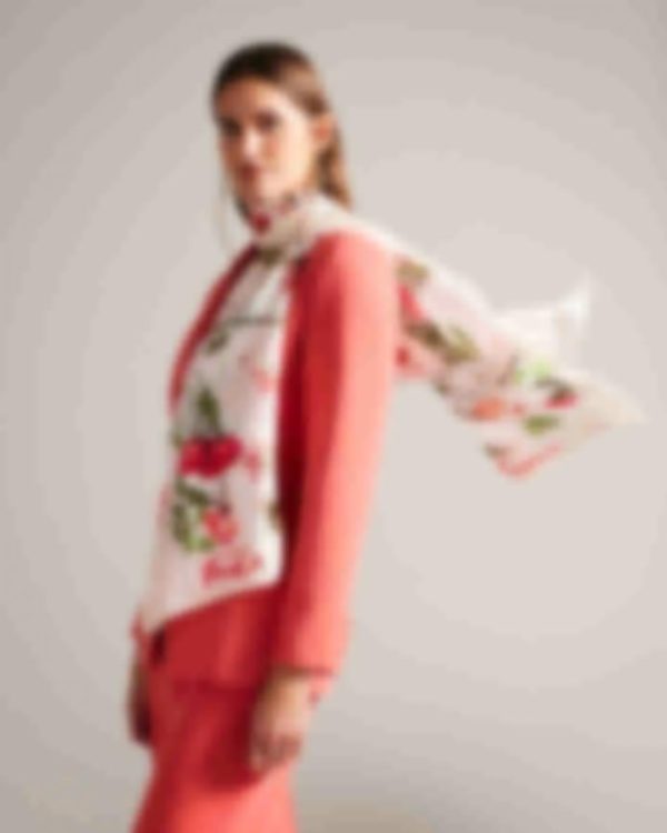 Make any outfit glam with the FIONAAS scarf. Crafted from pure silk with a vibrant floral print, this buttery soft scarf offers easy style points