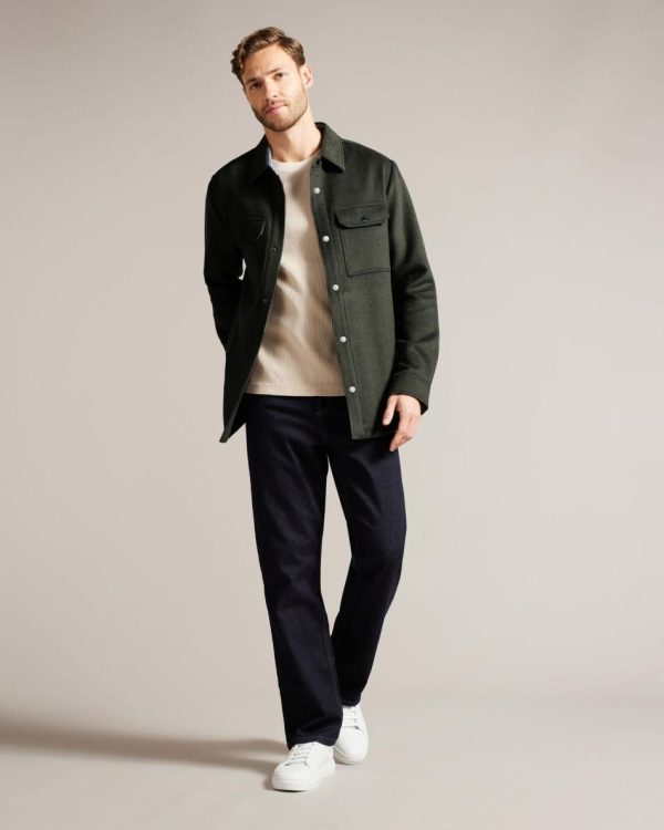 Shirts | Men Ted Baker Aderbry Wool Blend Overshirt Medium Green
