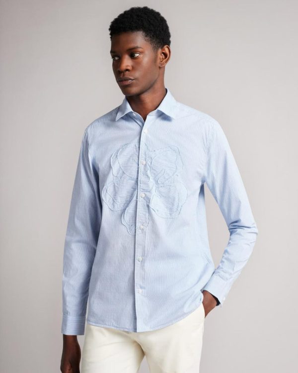 EVADNEE is the definition of elevated classic. With suble stripes in 100% cotton, this classic shirt features a large magnolia embellishment across the front. Wear with jeans and trainers for a bright and airy daytime look, or dress it up for an evening at the bar.brbrBy choosing Ted Baker cotton products, you’re supporting our investment in the a Better Cotton Initiativea’s mission. This product is sourced via a system of mass balance and therefore may not contain Better Cotton
