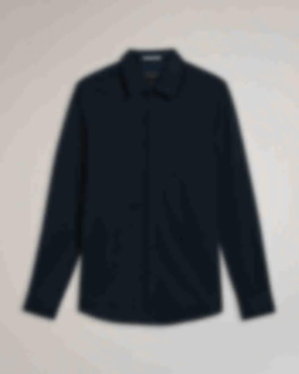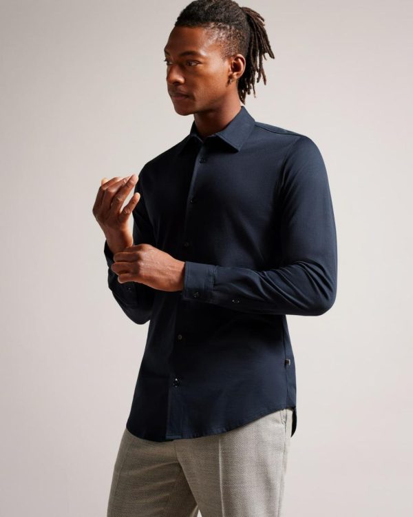 Shirts | Men Ted Baker Marros Long Sleeve Lustrous Jersey Shirt Navy