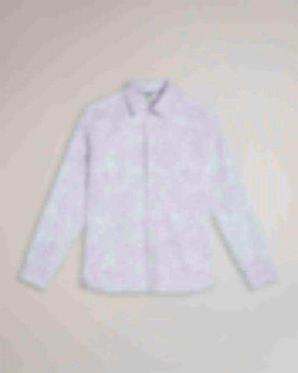 Shirts | Men Ted Baker Neale Long Sleeve Floral Outline Print Shirt White