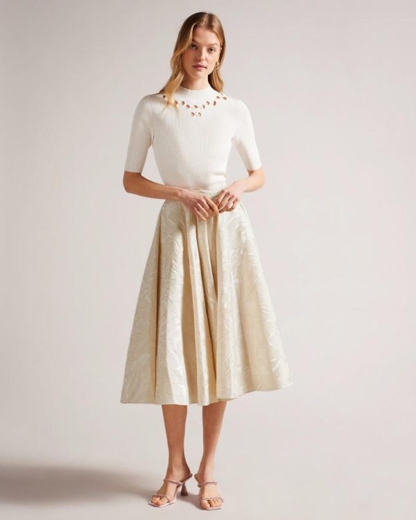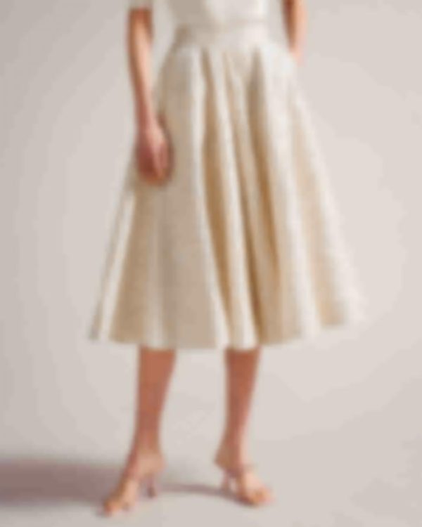 ALANNAS makes an entrance. Featuring a jacquard paisley design with a voluminous silhouette (and pockets), this skirt is the ultimate in glamour