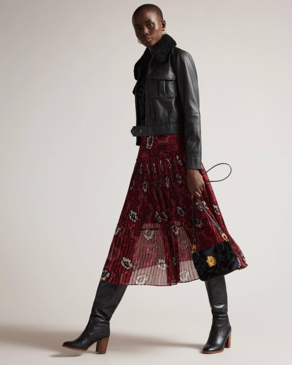 Skirts | Women Ted Baker Ariello Corrugated Dropped Waist Midi Skirt Red
