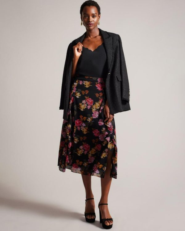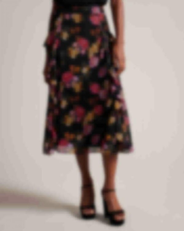 Skirts | Women Ted Baker Pattsie Midi Skirt With Waterfall Ruffles Black