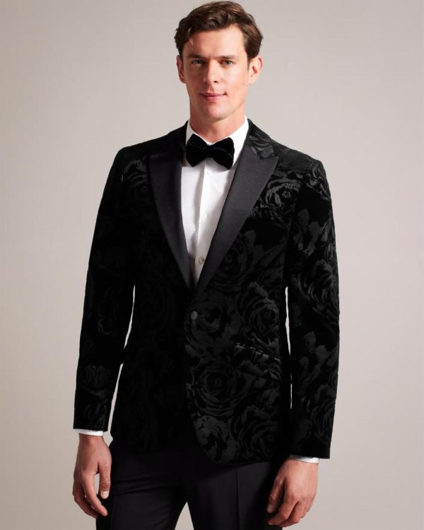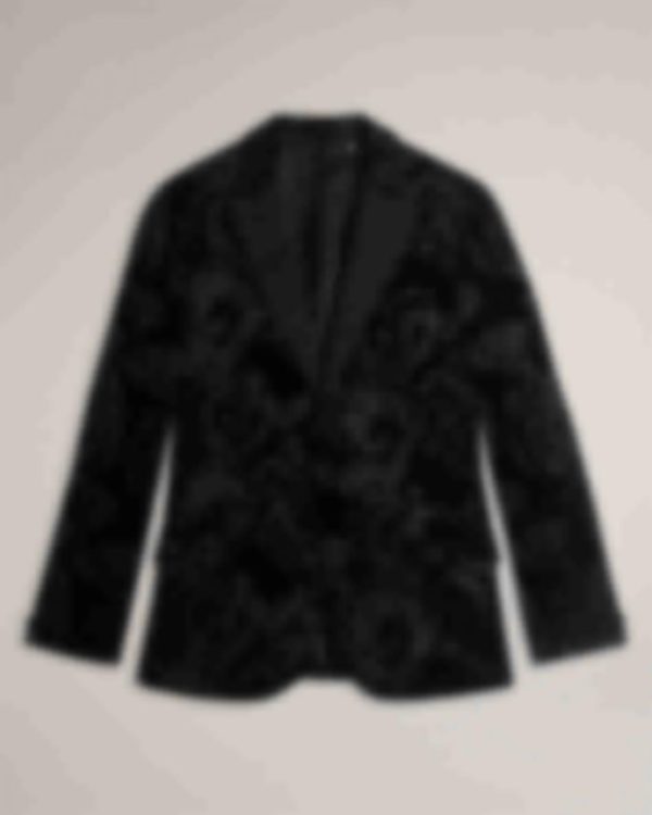 BATHJ makes a grand entrance. Crafted from a cotton-rich fabric, this rose-patterned blazer is comfort and class all wrapped up in one exquisite piece