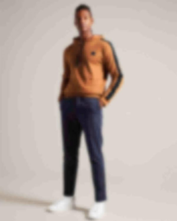 Stay comfy and stylish in WARBR. Made from a soft and stretchy cotton blend, this hoodie offers comfort with a fashionable edge. A drawstring in the hood and contrasting stripe on the sleeves add extra flair to your casual look