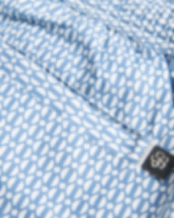 POPOV are the perfect blend of fashion and function, featuring a drawstring waistband and pockets for your essentials. Their fully lined interior ensures all-day comfort, while the striking geometric print is sure to turn heads at the beach. Whether you’re soaking up the sun or taking a dip, these swim shorts are a must-have for any stylish swimwear collection.divbrdivdivThe shell fabric of this product is made of 100% recycled polyester. Using recycled polyester helps divert plastic waste from ending in landfills, and helps us to reduce our dependence on virgin materials.brdiv