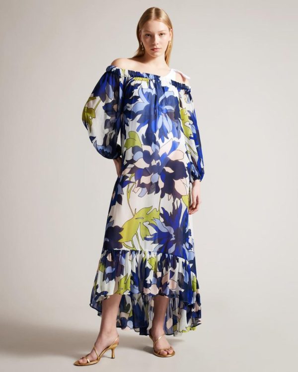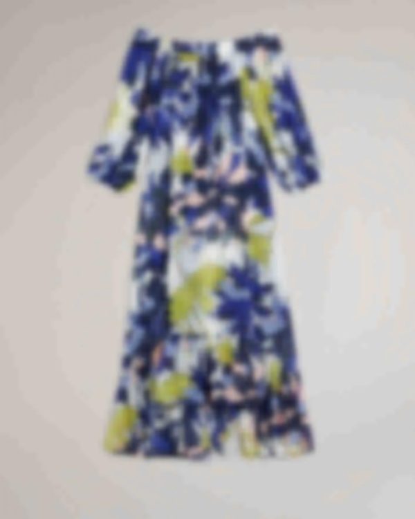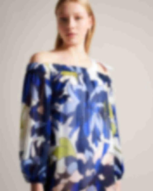 Flowy and feminine, AVINNN is the perfect addition to your summer wardrobe. With a beautiful chrysanthemum print, long blouson sleeves, and an elasticated off-the-shoulder neckline, you’ll feel effortlessly chic all day long. brbrThe fabric of this product is made of 100% recycled polyester. Using recycled polyester helps us to reduce our dependence on virgin materials, saving energy and resources