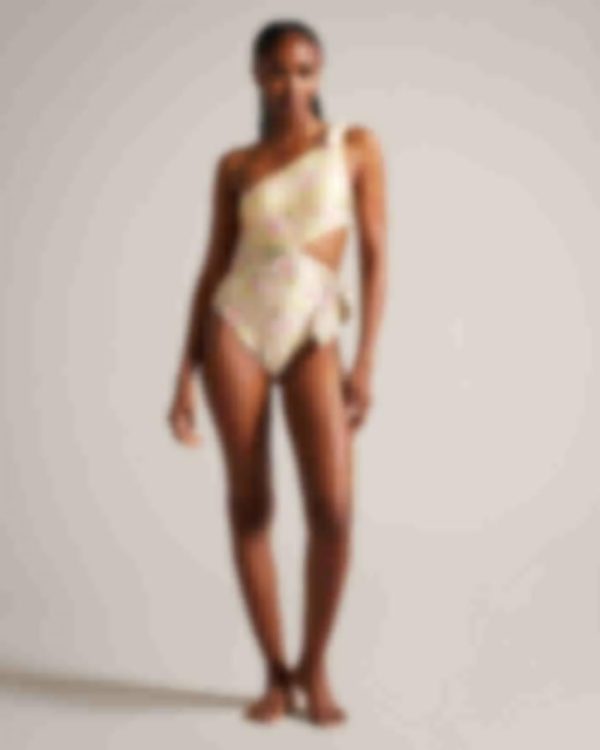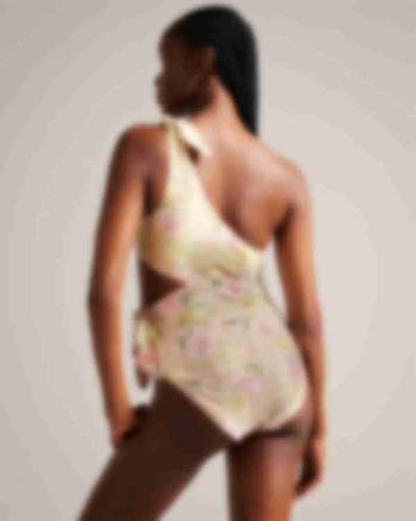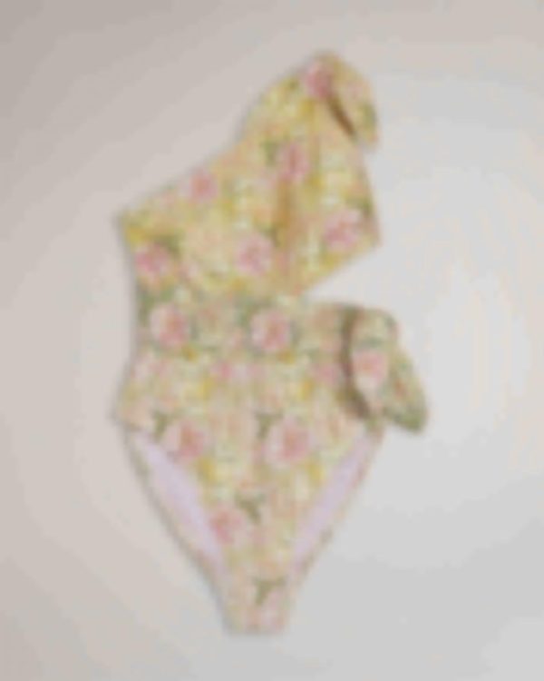 Level up your summer wardrobe with HOLYANN. This swimsuit’s asymmetrical design boasts a chic one-shoulder silhouette, adorned with a delicate bow embellishment that adds a touch of elegance to your poolside look. A floral print and side cut-out complete the look