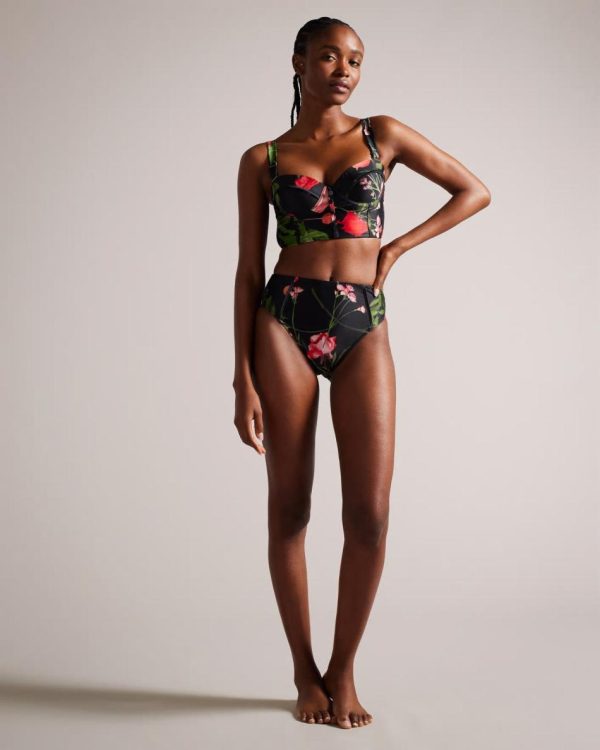 Swimwear & Beachwear | Women Ted Baker Loesiy Floral High Waisted Bikini Bottom Black