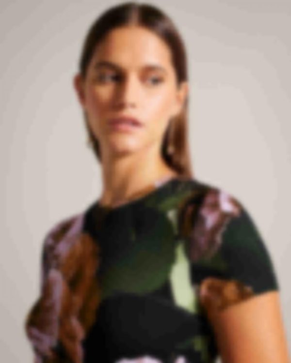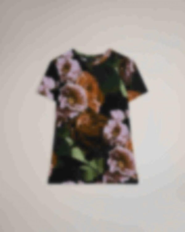 Add a burst of floral beauty to your wardrobe with our MORLAA T-shirt. Featuring a captivating photographic floral print, this tee is a true statement piece. The short sleeves and crew neck offer a classic and versatile style, while the stretch fabric ensures a comfortable and flattering fit, whether paired with jeans or dressed up
