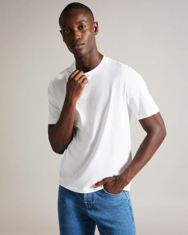 Tops | Men Ted Baker Tywinn Short Sleeve Regular Fit Plain T-Shirt White