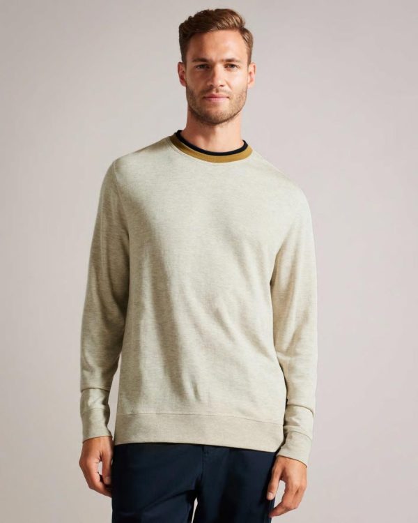 Tops | Men Ted Baker Zylem Long Sleeve Soft Touch Sweatshirt Natural