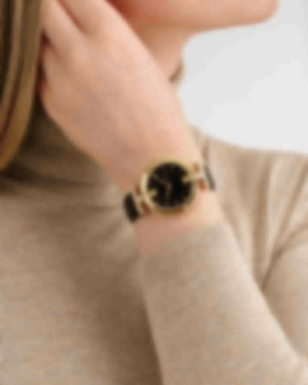 With its sleek design and understated elegance, DARBEYA effortlessly combines fashion and functionality. The case is adorned with sparkling crystal embellished T details, adding a touch of glamour to this timepiece